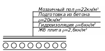 | Постоянная Мозаичный пол 0,04 22 Подготовка из бетона 0,03 20 Гидроизоляция 0,003 6 Железобетонная плита Итого Временная для магазина Полная | 0,88 0,6 0,02 2,6 ~4,1 4 8,1 | 1,3 1,2 1,2 1,1 1,2 | 1,14 0,72 0,02 2,86 4,74 4,8 9,54 |