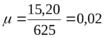 Полученное значение µ находится в диапазоне рекомендуемых значений (0,01-0,02).