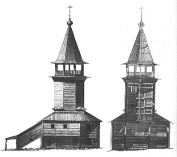 Широко и далеко разнеслась по земле слава Кижского погоста. Величаво его многоглавие. Но не только многоглавыми, а и шатровыми храмами славна Русская земля. Именно они стали ведущим типом народного деревянного зодчества. Возникновение и распространение на Руси шатрового деревянного зодчества прямо связано с практикой военнооборонительного строительства и порожденными им архитектурными образами. Самый древний из них—образ сторожевой башни-вежи. Ее суровый и неприступный вид как символ независимой силы и спокойствия был наполнен глубоким патриотическим содержанием.