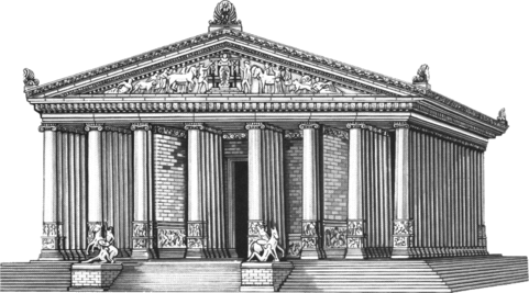 А храм эфесцы решили построить вновь. Второй храм строил архитектор Хейрократ, знаменитый выдумщик, которому приписывают планировку Александрии, образцового города эллинского мира, и идею превратить гору Афон в статую Александра Македонского с сосудом в руке, из которого изливается река.