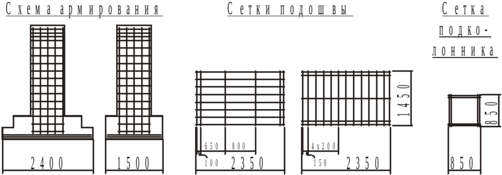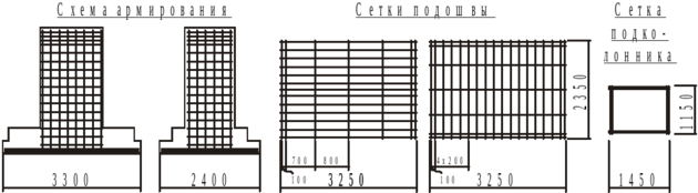 Считаем, что фундамент Ф2 армируется двумя горизонтальными сетками (подошва) и вертикальной закольцованной сетки, выполненной из четырех отдельных вертикальных сеток (подколонник, см рис. 5).