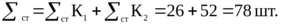 K1 + K2 + K3 = 26 + 26 + 18 = 70 шт. (14)