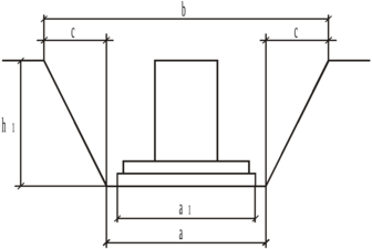 Размеры траншеи (см. рис.3): a1 = 2,4 м; a = 2,4 + 1,2 = 3,6 м; h1 = 3,0 м; c = 0,5*h1 =1,5 м; b = a + 2*c = 3,6 + 2*1,5 = 6,6 м.