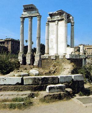 амое оживленное место в годы Республики – Римский Форум – застраивался особенно красивыми зданиями. Здесь воздвигли перестроенные в годы Империи храмы Сатурна, а также Кастора и Поллукса. У склонов Капитолия после примирения патрициев и плебеев построили храм Согласия (Конкордии).