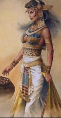 Священное животное Весты - Осел. Веста выглядит как женщина в длинном платье c покрытой головой. Ее правая рука опущена, а в левой она держит скипетр.