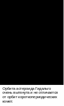 Орбиты астероидов, носящихся преимущественно между орбитами Марса и Юпитера, часто отличаются от орбит больших планет сильными наклонами к эклиптике и большой вытянутостью (большим эксцентриситетом). У астероидов наклоны доходят до 43º (у Гидальго), а эксцентриситет — до 0, 65 (у него же). Особенно много таких сильно наклоненных и крайне вытянутых орбит открыто за последнее время преимущественно у мелких астероидов. В этом отношении орбиты астероидов представляют промежуточное звено между почти круговыми орбитами больших планет и очень вытянутыми орбитами комет. У Гидальго и у некоторых других астероидов орбита вытянута даже больше, чем у ряда комет.