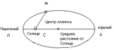 Ближайшую к Солнцу точку орбиты (П) называют перегелием, а наиболее удаленную афелием.