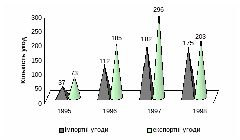 Кількість експортних та імпортних акредитивних угод за період з 1995 по 1999 роки.
