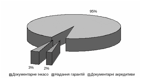 Рисунок 2.8 Діаграма обсягу застосування різних видів документарних операцій у фінансуванні зовнішньої торгівлі банку “Фінанси та кредит” у 1998 році