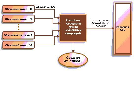 В отделе внешнеэкономической деятельности готовятся исходные данные на каждый рабочий день, они включают в себя курсы ЦБ на текущий день для каждой валюты, курсы покупки/продажи, курсы конверсии установленные внутри банка, также определяются кассир, для каждого обменного пункта фиксируется выданный аванс и номера выданных бланков строгой отчетности. После этого формируется посылка с данными по конкретному обменному пункту, которая пересылается в виде дискеты, либо по модемной связи.