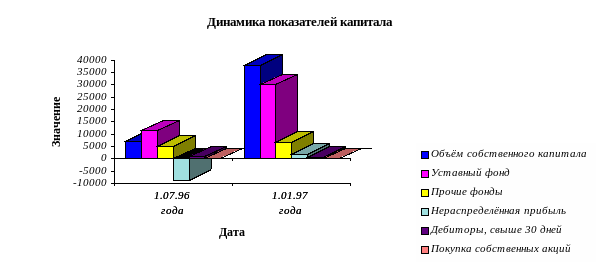 Данные обстоятельства привели к тому, что по состоянию на 1.07.96 года собственные средства банка на 159,9 % состоят из уставного фонда (банк не увеличил свой капитал за счет прибыли, иных фондов, а “проел” 59,9 % уставного фонда, в результате чего при фондах в 16512 м.р., капитал составляет всего 7100,1 м.р.).