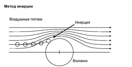 При резком изменении воздушного потока, частичка с достаточной величиной инертности перестает следовать за воздушным потоком и ударяется в волокно. Инертность аэрозольной частички зависит от ее размера, плотности, конфигурации и скорости движения. Тяжело груженый грузовик мчится к препятствию с очень большой скоростью. Сила инерции заставит грузовик удариться о препятствие. В то же время легковые автомобили без труда обходят препятствие.