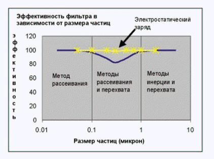 Эффективность фильтрации в зависимости от размера частиц