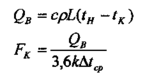 где TiBr|H- КПД вентилятора и привода соответственно, В некоторых вентиляционных системах для подогрева наружного воздуха используют калориферы. Подбор их заключается в определении расхода теплоты QB (Вт/ч) на подогрев воздуха и расчете поверхности нагрева калориферной установки ж (в м) по формулам: