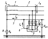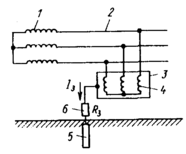 Рис. 1. Схема защитного заземления в сети с изолированной нейтралью: