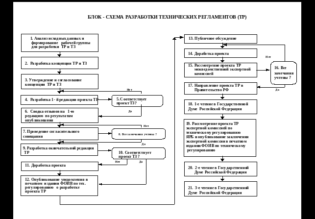 К сожалению, предложенная идеология содержит ряд, так сказать, в данный момент неизвестных граничных условий. В рамках административной реформы государственные функции всех упомянутых ведомств могут быть изменены, упразднены или уточнены. Поэтому сейчас трудно говорить, как, в каких формах и кем будет устанавливаться соответствие, которое непременно должно быть отражено в каждом ТР.