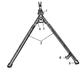 1—основание сошки; 2—ноги, 3—пружина; 4—выступ; 5 — полозок; 6 — пружинная застежка.