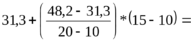В таблиці є значення для 10 та 20 т хлорпікрину. Якщо 10т – 31,3 км, 20т – 48,2 км, тоді:
