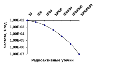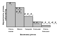 о данным дерева отказов и полученным значениям вероятности возможных отказов можно построить гистограмму частот для различных величин утечек (на примере ядерного реактора).