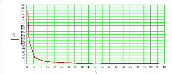 1.2.1. P1=P4t0.4. Для удобства нарисуем таблицу зависимости Pt=P1t-0.4