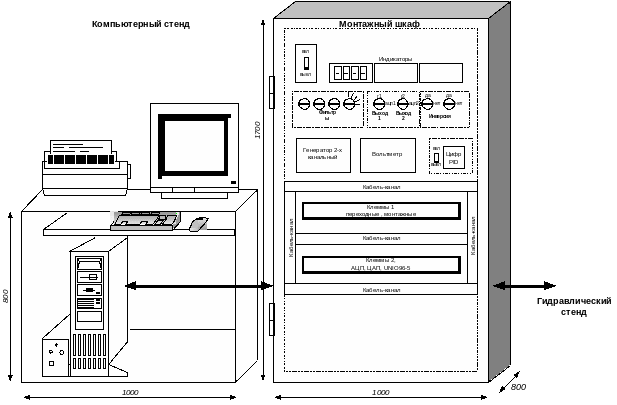 Модуль управления – стационарная лабораторная установка, состоящая из компьютерного стола, монтажного шкафа и кабелей соединения. Устройств, образующих холод, нет. Устройства, вырабатывающие тепло, скрыты защитной оболочкой и имеют радиаторы (процессор в системном блоке, радиаторы блоков питания, лампа освещения в монтажном шкафу закрыта плафоном и т.д.). Инженер-исследователь (обслуживающий персонал) не имеет права открывать монтажный шкаф (снимать кожух с системного блока) и проводить работы, он должен вызвать соответствующий персонал.