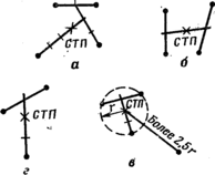 — полученную точку соединить с третьей пробоиной и расстояние между ними разделить на три равные части.Точка деления, ближайшая к первым двум пробоинам, и будет средней точкой попадания (рис. г).