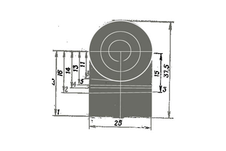 / — для автомата, ручных пулеметов и самозарядного карабина под патрон обр. 1943 г.; 2—для снайперской винтовки-3—для пулемета Калашникова, ротного пулемета, ручных пулеметов под винтовочный патрон; 4 — для станковых пулеметов при стрельбе патронами с пулеП обр. 1930 г.; 5— для станковых пулеметов при стрельбе патронами с пулей обр. 1908 г. и для 5,45-мм автомата (АК74); S—для пистолетов и револьверов; 7—для 12.7-мм пулемета ДШК; 8— для 5,45-мм ручного пулемета (РПК74)