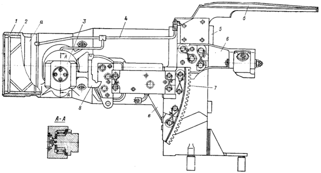 крепятся сектор 7 подъемного механизма и кронштейн 8 для крепления головной части прицела.