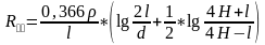 Определяем сопротивление растекания тока единичного стержня заземлителя