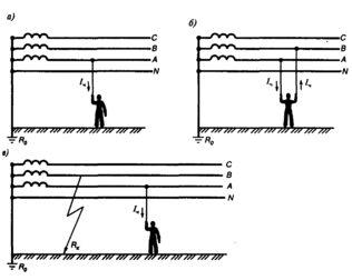 Рис. 2. Опасность трехфазных электрических цепей с заземленной нейтралью