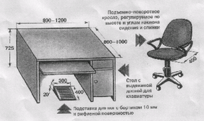 Рис. 1. Требования к мебели при работе с персональным компьютером.