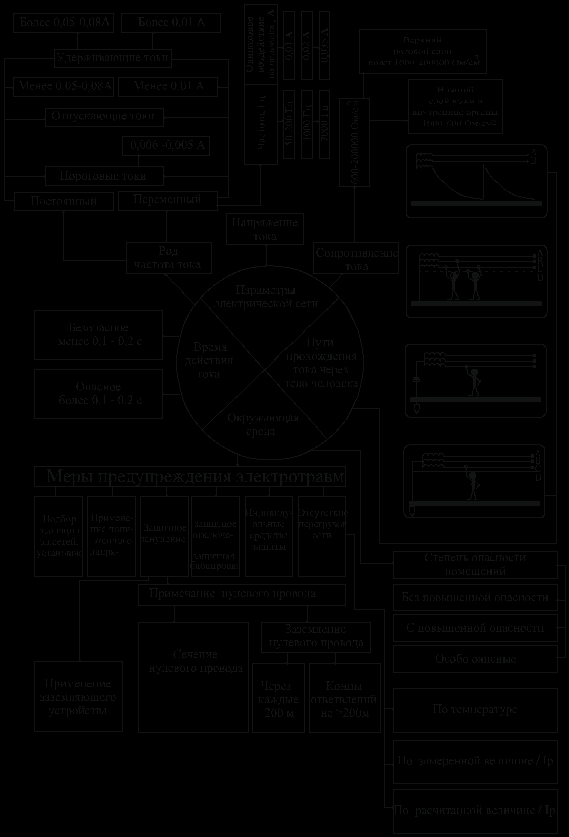 - параметров электрической цепи (напряжения, сопротивления человеческого тела);
