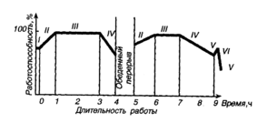 Рис. 2.1. Фазы работоспособности человека в течение рабочего дня