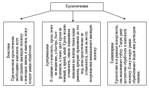 У: Спасибо вам ребята, за оказанную помощь. А теперь вопрос всему классу: какие виды кровотечений вы знаете?