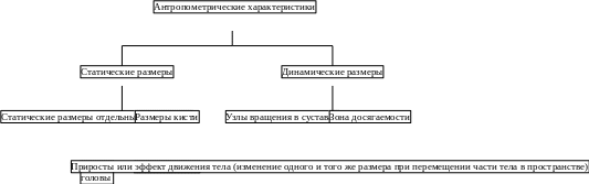 Антропометрические характеристики (АХ) подразделяют на динамические и статические. Их состав показан на рис. 2.6.