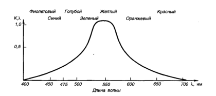 — ощущение, вызываемое источником излучения с длиной волны 554 нм; S — ощущение, вызываемое источником той же мощности с длиной волны .