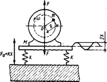 Принцип пассивной виброизоляции хорошо видно на примере виброизоляции неуравновешенной машине массой М с эксцентриком массой m на расстоянии R от оси вращения (рис.2.5.12.).