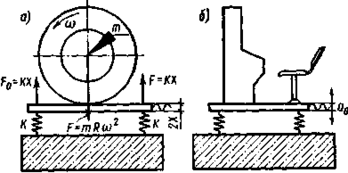 Рис. Схема виброизоляции динамической не уравновешенной машины