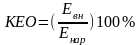 Критерием естественной освещенности является коэффициент естественной освещенности (КЕО или ЕН), который представляет отношение естественной освещенности светом неба в некоторой точке заданной плоскости внутри помещения Евн к одновременному значению наружной горизонтальной освещенности, создаваемой светом полностью открытого небосвода Енар, и выражается в процентах: