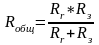 Iобщ - общий проходящий ток через два заземлителя (тело человека и заземлитель), Ом;