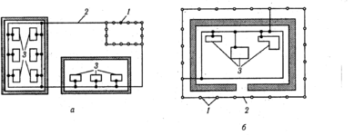 Рис 3.4.7 Выносное (а) и контурное (б) заземления:
