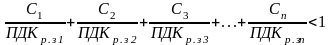 При одновременном содержании в воздухе рабочей зоны нескольких вредных веществ однонаправленного действия сумма отношении фактических концентраций каждого из них (С1, С2, С3 и т.д.) в воздухе помещений к их ПДКр. з (ПДКр. з1, ПДКр. з2, ПДКр. з3 и т.д.) не должна превышать единицы.