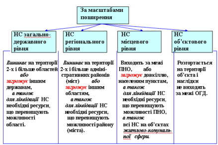Надзвичайна ситуація – порушення нормальних умов життя і діяльності людей на ОГД або території, викликане аварією, катастрофою, стихійним явищем, епідемією, епізоотією, епіфітотією, великою пожежою, застосуванням засобів ураження, які привели чи можуть привести до людських чи матеріальних втрат.