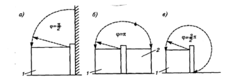Рис. 4.7. Угол между границами всасывающего факела при различном расположении ванны: а — у стены (