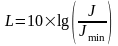 Такий величезний діапазон доступний нам завдяки здатності вуха реагувати не на абсолютну інтенсивність звуку, а на її приріст, і називається він рівнем інтенсивності звуку. Рівень інтенсивності звуку L – це логарифм відношення, що розглядається J, і на порозі чутності Jmin сил звуку, вимірюється в дБ: