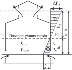 Природна вентиляція в будівлі відбувається за рахунок різниці щільності повітря зовні і усередині приміщення (рис. 1.). У приміщенні температура