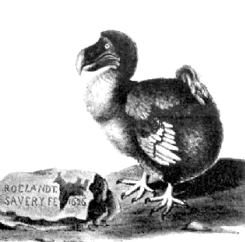 В 1638 г. голландцы соорудили на острове укрепления и, заодно завезли с собой собак и кошек. Серому, или маврикийскому, дронту (Raphus cucullatus) оставалось жить лет 50, не более. Англичанин Питер Манди, увидевший два экземпляра этой странной птицы в городе Сурате в Индии, специально посетил в том же году Маврикий. Но не встретил там ни единого дронта.