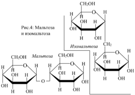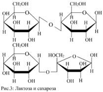 з тех глюкозных остатков, которые в молекуле крахмала соединены 1,6-гликозидной связью, образуется дисахарид изомальтоза. Кроме того, с пищей в организм поступают дисахариды сахароза и лактоза (рис.3), которые гидролизуются специфическими гликозидазами – мальтазой, изомальтазой, лактазой и сахаразой соответственно.