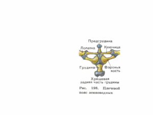Рис.2. Скелет передней конечности кистепёрой рыбы и древнего земноводного