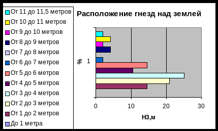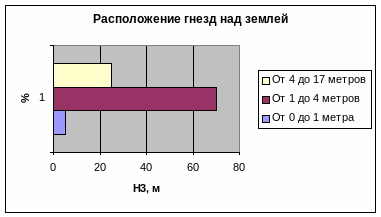 Расположение гнезд над землей (общее количество измерений: 48; 1% = 048)
